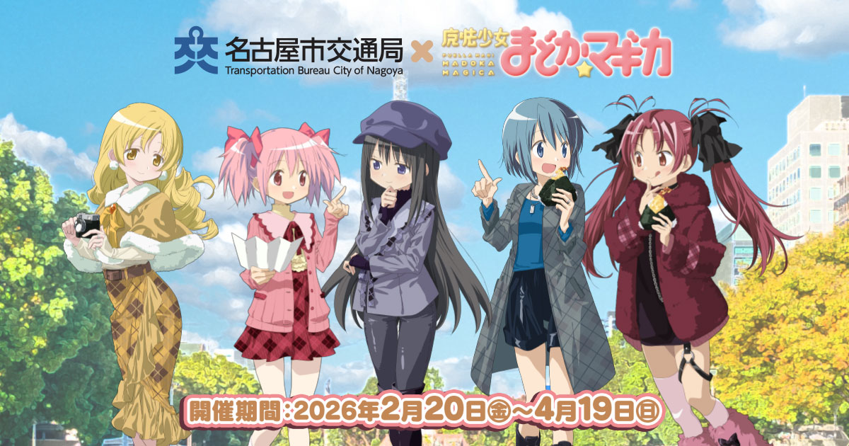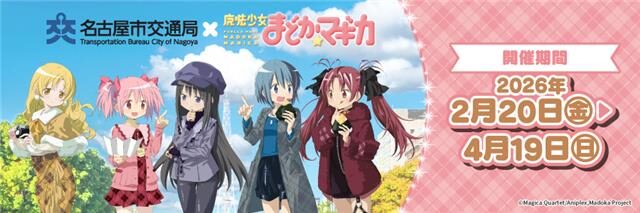 「魔法少女まどか☆マギカ」が名古屋をジャック!? 名古屋市交通局&JR東海とのコラボイベント「名古屋市交通局×魔法少女まどか☆マギカ with JR東海[推し旅]」が2026年2月20日(金)~4月19日(日)にわたり開催されることが発表されました。
