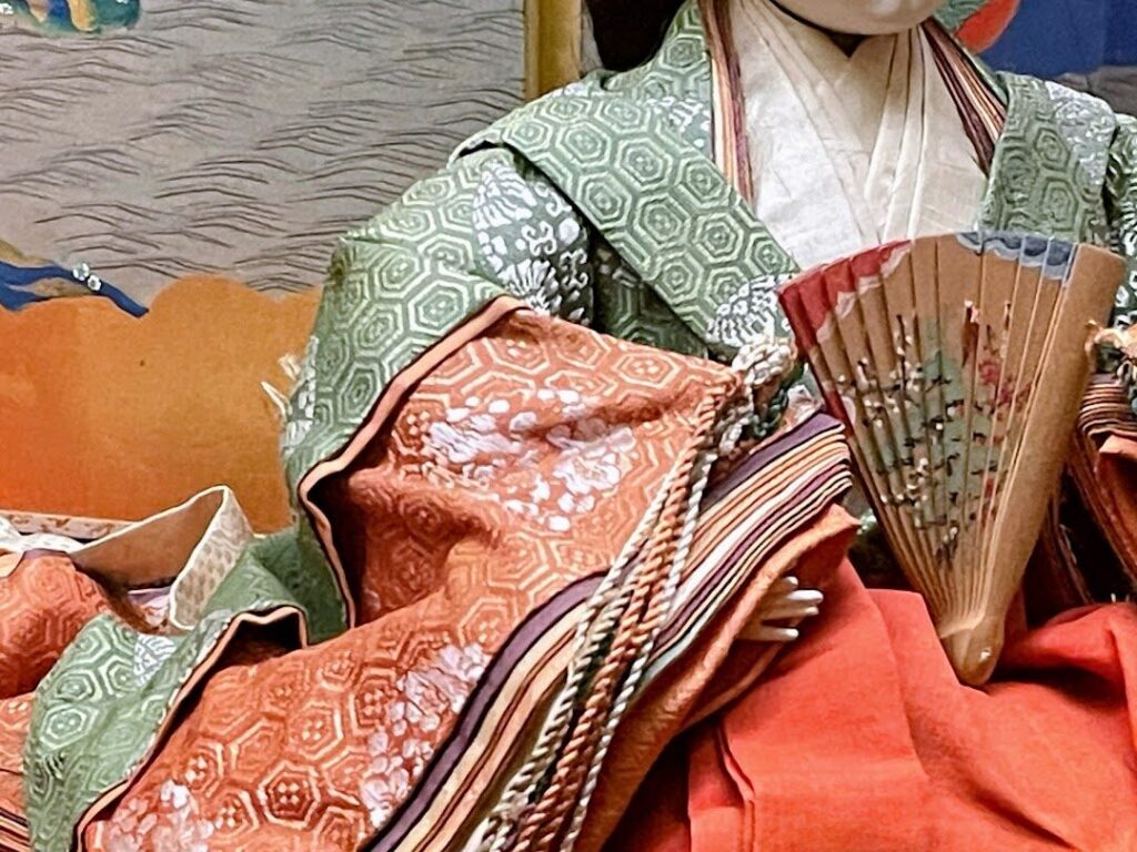 2026年の「尾張徳川家の雛まつり」の2つ目の見どころが14代当主・徳川慶勝夫人の雛人形「矩姫(かねひめ)の有職雛」です。「有職雛」とは、公家の装束を正しく考証して作られたひな人形のこと。2026年は公家の正装である「束帯」を着用した男雛と「十二単」を着用した女雛が展示されています。