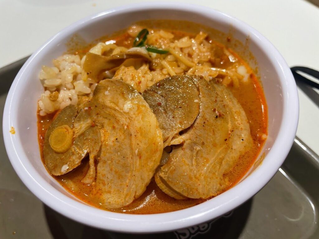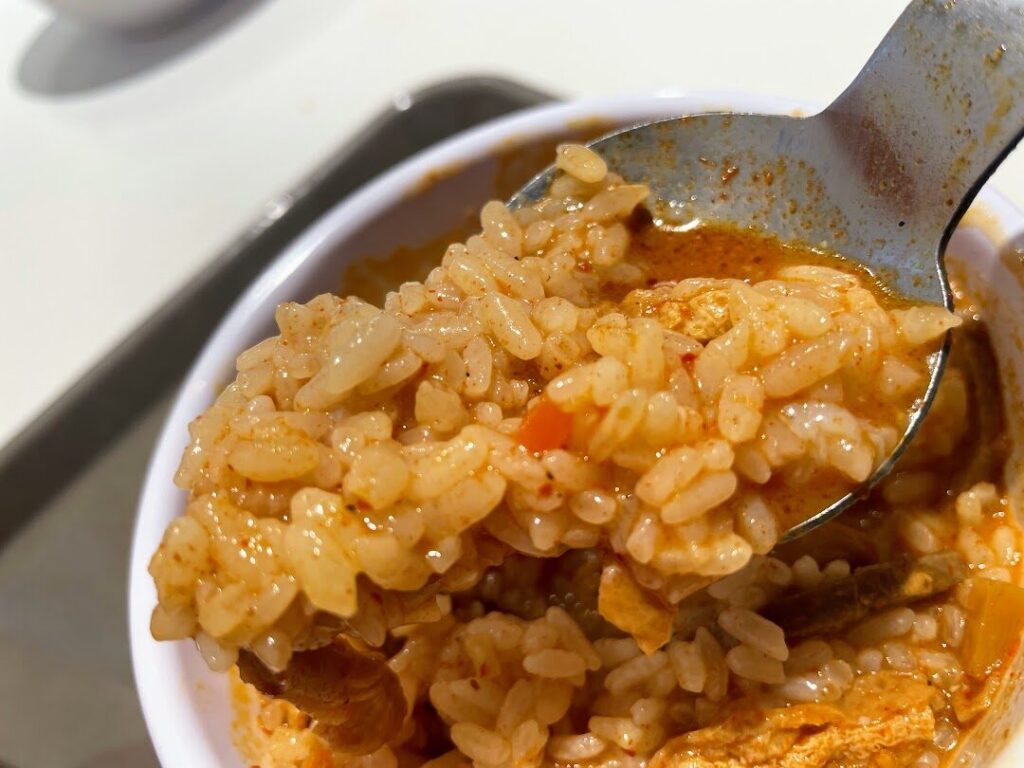 そして五目ごはんに残ったスープをINしてみたところ、これがまたまた最高のおいしさ!五目ごはんの旨味と旨辛スープが出会い、最高のハーモニーを奏でていました。これもまた、「スガ辛魚」ならではの楽しみ方です。