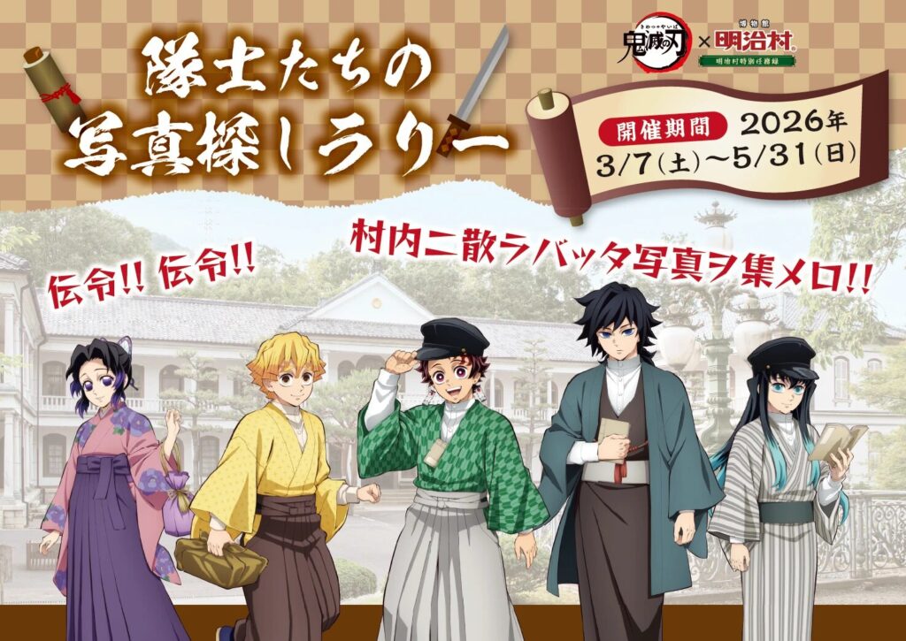 愛知県犬山市にある博物館 明治村が、この春「鬼滅の刃」とコラボレーション!アニメ「鬼滅の刃」の世界観を存分に体感できる期間限定イベント「鬼滅の刃×博物館 明治村 明治村特別任務録」が2026年3月7日~5月31日まで開催されます。