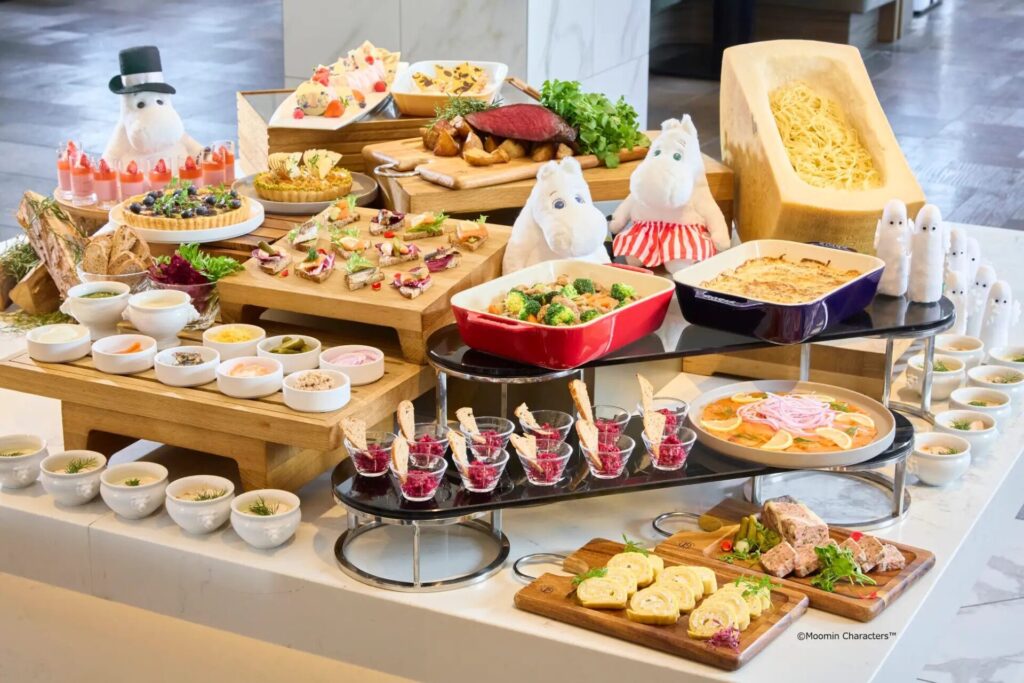ディルオイルとローストポテトを添えたモダンサーモンや、伝統的な煮込み料理カルヤランパイスティなどフィンランドならではの料理はもちろん、デザートにも爽やかなフィンランド風ラズベリームースなどをがラインナップ。「ムーミン」のストーリーとともに、現地の息づかいを感じる“北欧の食”を味わえる特別なブッフェで、心温まるひとときを過ごせます。
