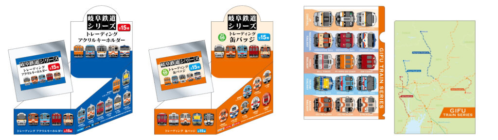 「鉄道ファンフェスタ」の会場では、参加各社が共同制作した3種類の記念商品が数量限定で先行販売されます。「トレーディングアクリルキーホルダー」「トレーディング缶バッジ」はそれぞれ15種類のデザインが用意され、ランダムで購入が可能。「オリジナルクリアファイル」には、参加5社の列車が3種類ずつあしらわれたスペシャル仕様となっています。