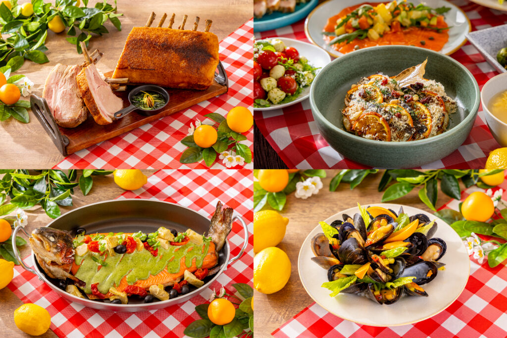 香ばしく焼き上げた骨付き豚肉をレモンとパセリの風味豊かなグレモラータソース「シシリアン ポーク コトレッタ」は土日祝限定での登場。レーズンやオレンジの酸味がアクセントとなった「イワシのベッカフィーコ シチリア風パン粉焼き」や、ジェノベーゼソースの緑、セミドライトマトの赤、カルチョフィ―の黄色の彩りも素敵な「シチリア風サーモンのロースト」、蒸したムール貝に甘酸っぱいオレンジとパプリカのソースを絡めた「ムール貝とオレンジのアグロドルチェ」など、レモンやオレンジを使用した爽やかな味わいのシチリア伝統料理がズラリと並びます。