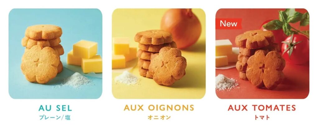「B.sablé(べー・サブレ)」は、フランス産ゲランドの塩が素材を引き立てるシンプルな味わいの「プレーン/塩」、玉ねぎの風味と香ばしさにキリリと効かせた粗挽き黒胡椒のアクセントを楽しめる「オニオン」、バジルとオレガノの香りでいっそう風味豊かに仕上がった濃厚な旨みと上品な甘みの絶妙なハーモニーがたまらない「トマト」の3種類を販売。どれも海老好きなら注目必至です。
