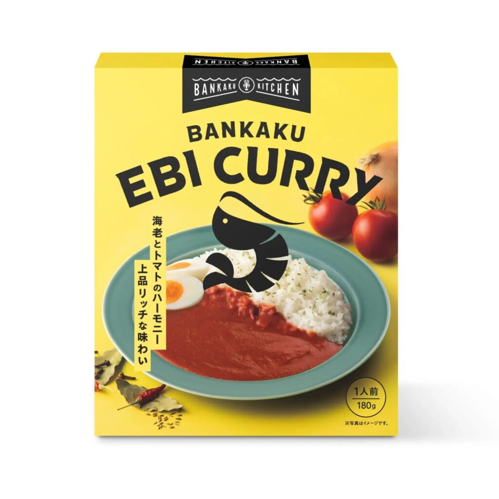「BANKAKU KITCHEN」の人気カレーがレトルトになった「BANKAKU EBI CURRY(バンカクエビカレー)」も会場で発売。オマール海老ブイヨンと魚介ブイヨンにトマトを合わせた旨みとコクのハーモニーとスパイス&ハーブが香るリッチな味わいが楽しめる、海老のプロを自負する坂角総本舖のこだわりが詰まった海老カレーのおいしさが袋の中に閉じ込められています。