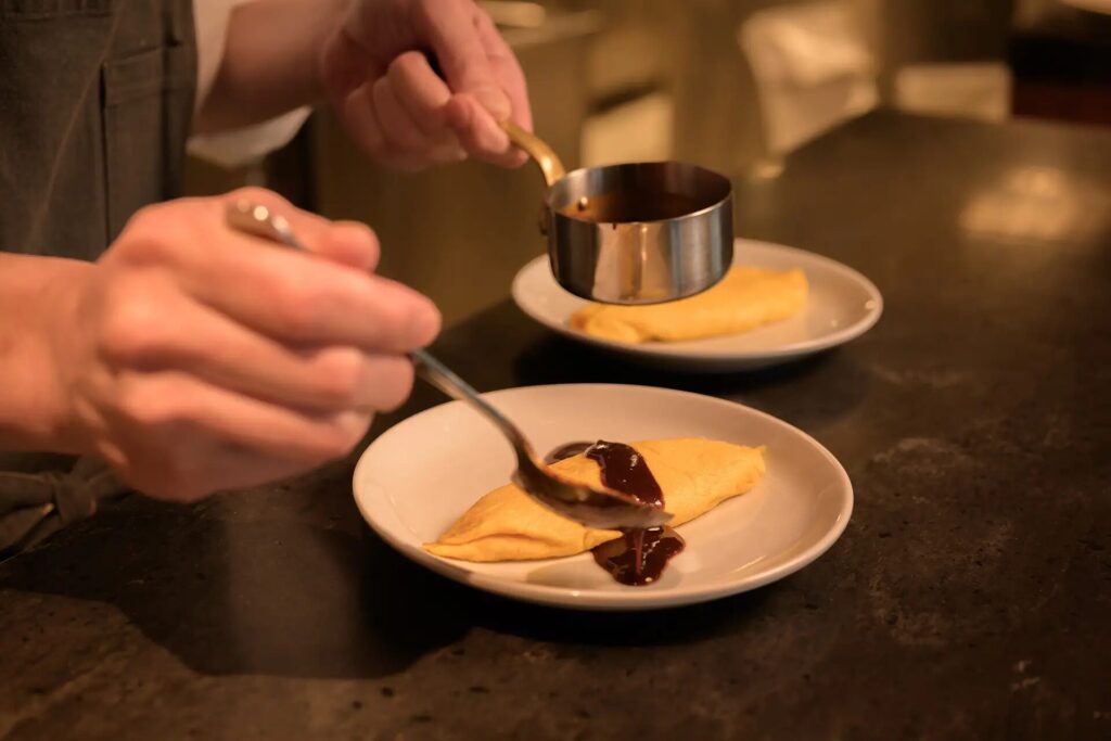ホテルの朝食には欠かせない「ライブキッチンで仕上げる卵料理」にも”名古屋めし味”が登場。八丁味噌を使った濃厚なソースと辛みを抑えた台湾ミンチソースの2種類の名古屋オリジナルソースをかければ、オムレツやフライドエッグも名古屋らしさ満点の味わいに大変身です。
