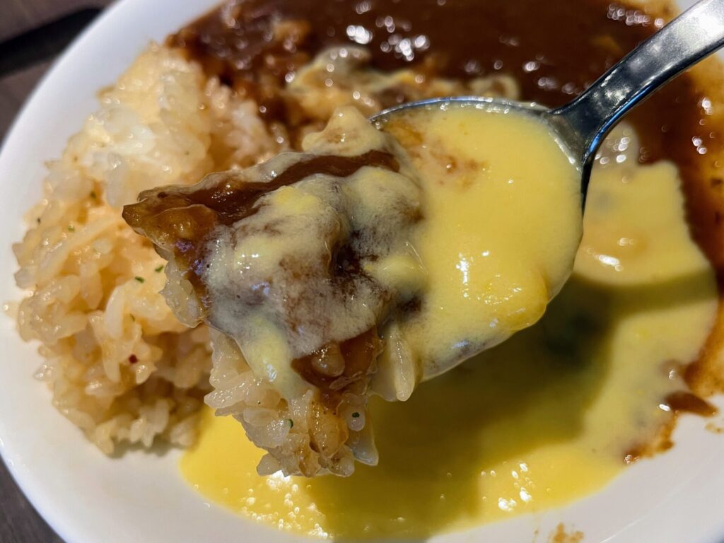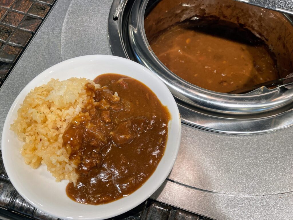マイルドながらもしっかりと辛みがある仕上がりになっているので、お子様や辛いものが苦手な方ならコーンスープと合わせるのがおすすめ。コーンスープの甘さが牛すじカレーの辛さをマイルドに包んでくれます。このレベルのビーフカレーが食べ放題というのは、本当に凄すぎます。