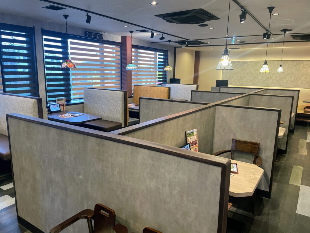 店内は明るさをしっかりと保ちながらも落ち着いた雰囲気を演出。長年「ごちそうレストラン」として親しまれてきた歴史を踏襲し、肘つきのソファや広々としたテーブルでゆったりと食事を楽しむことができるよう工夫されています。