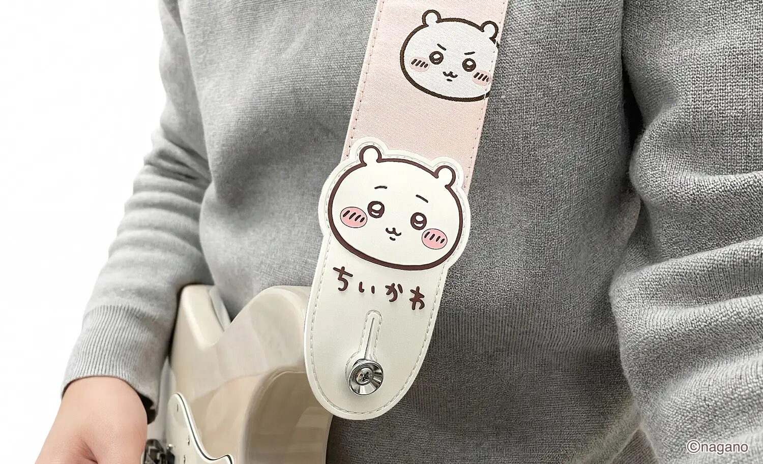「ちいかわギターストラップ」は、ストラップの表面にはちいかわたちのかわいい表情をレピア織りで美しく表現。ちいかわ、ハチワレ、うさぎのかわいいおかおが全面にアピールされています