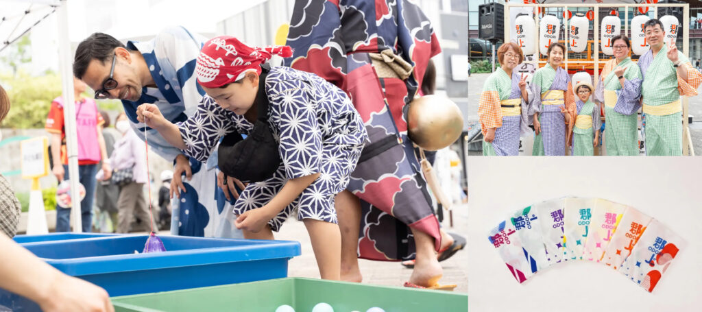 「踊り横丁」には、射的、輪投げ、スーパーボールすくい、ヨーヨー釣りなどが楽しめる「こども縁日」も登場。お祭りの思い出を残せるフォトスポットや、郡上の地場産業であるシルクスクリーンでプリントした踊りの必須アイテム「オリジナルデザイン手ぬぐい」にも注目です。