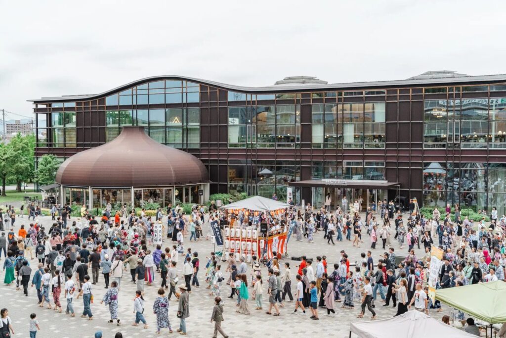 「郡上ODORI 2026」の踊り会場となるのは名古屋栄のど真ん中にある「ヒサヤオオドオリパーク」のミズベヒロバ。普段は入ることができない”水盆の上”に特設の踊り会場が設けられ、中部電力MIRAI TOWERを真正面に見上げながら踊りを楽しめます。