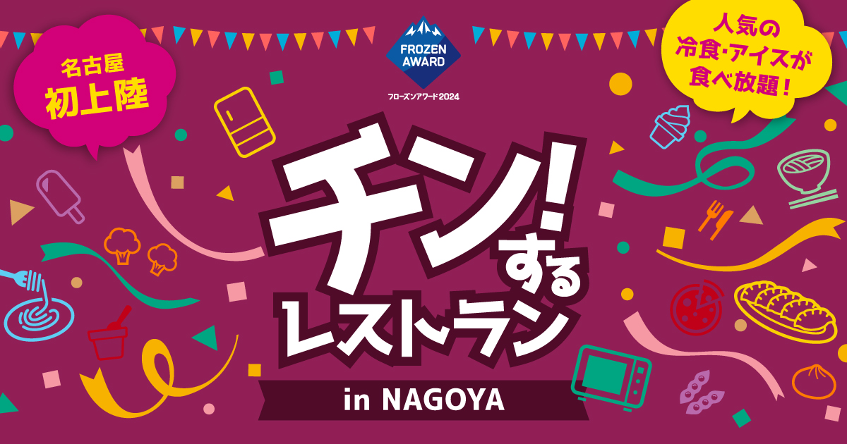 2022年10月に東京で、2023年6月には大阪で開催し、大好評を博した冷凍食品とアイスクリームが食べ放題のレストラン「チン!するレストラン」がいよいよ名古屋初上陸!2024年4月13日(土)~28日(日)の16日間にわたり、ささしまライブ・グローバルゲートにて期間限定レストラン「チン!するレストランin NAGOYA」がオープンします。