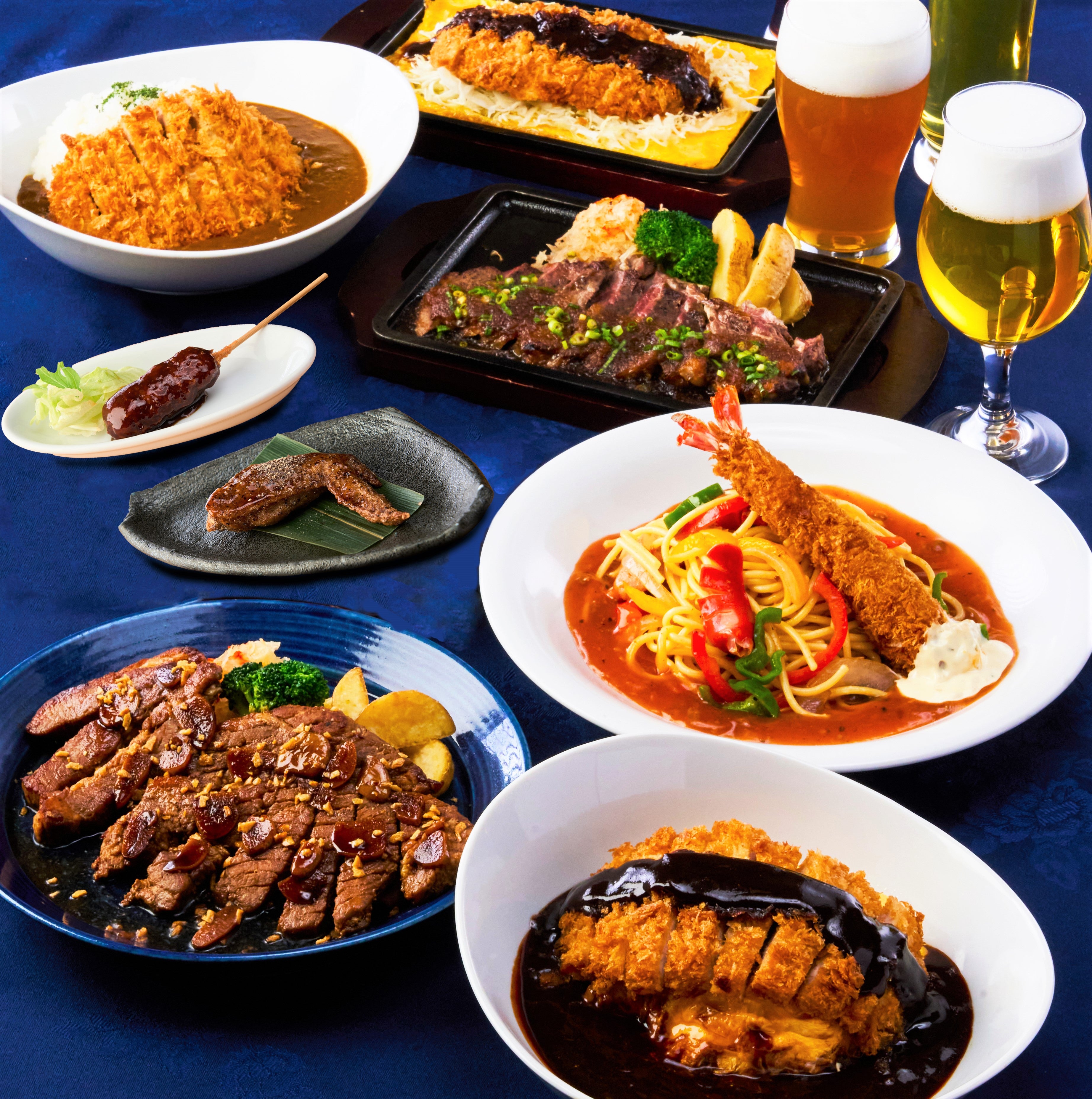 デミグラスソースのオムライスに赤味噌とんかつをドンッと乗せたボリューム満点の「みそとんオムライス」や、トマトベースで程よい辛さのとろっとしたあんが特徴的な太めの麺によく絡む「あんかけスパゲッティ~海老フライのせ~」など、食事として楽しめるメニューも幅広いラインナップで揃っています。