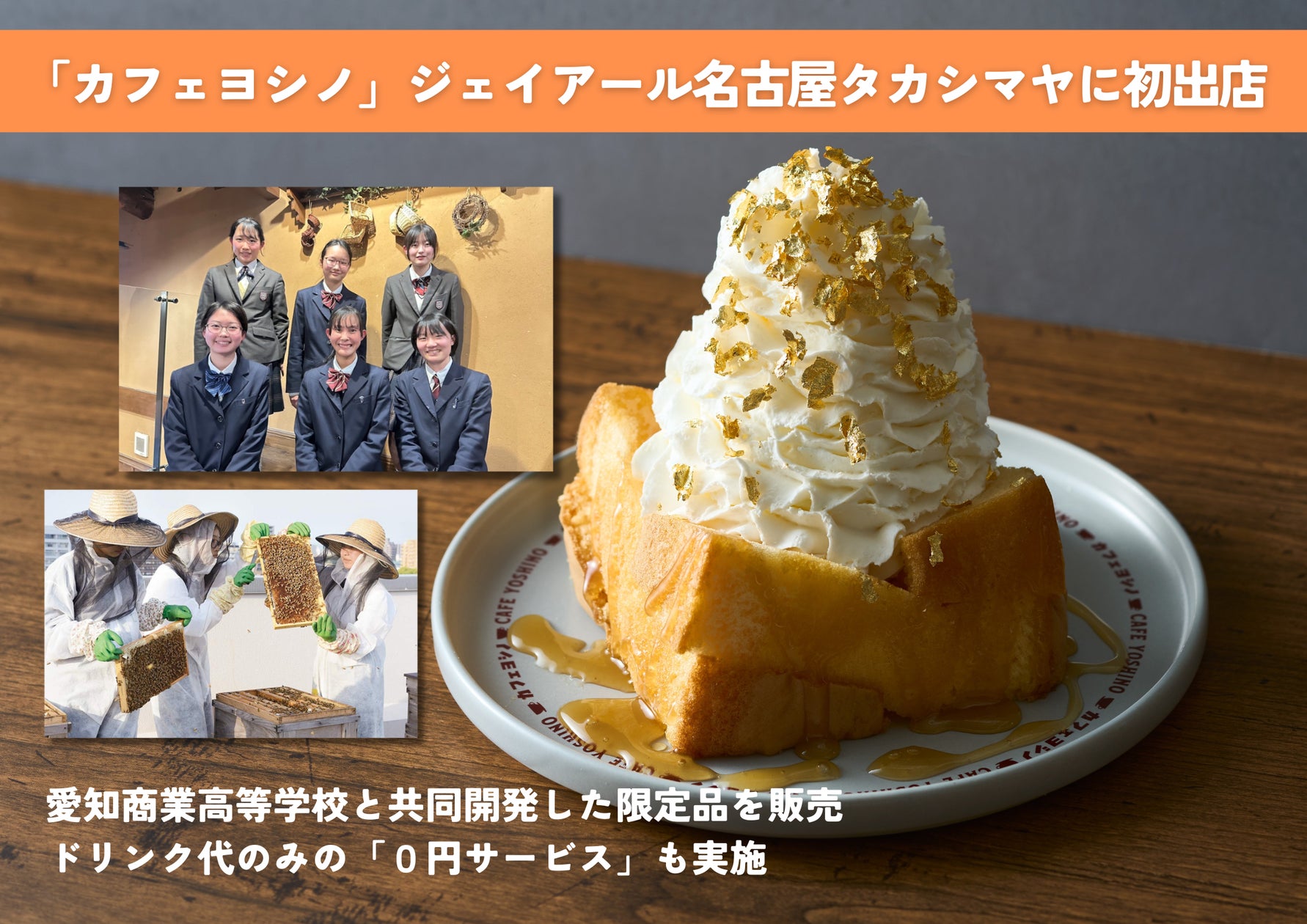 愛知県内に17店舗を展開する喫茶チェーン「カフェヨシノ」が、5月15日(水) ~20日(月)にわたりジェイアール名古屋タカシマヤで開催される催事「珈琲を愉しむ」に初出店。愛知商業高等学校の高校生たち共同開発した限定商品の販売を行う他、モーニングをはじめとした「ドリンク代のみの0円サービス」を終日行います。