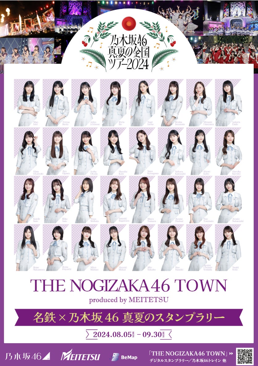 名古屋鉄道が乃木坂46とコラボレーション!乃木坂46が5年ぶりに全国のドーム会場で開催する「真夏の全国ツアー」愛知公演(8月24日・25日開催)にあわせ、ライブ開催地をアーティストと共に盛り上げる「THE NOGIZAKA46 TOWN produced by MEITETSU」が8月5日~9月30日にわたり行われます。
