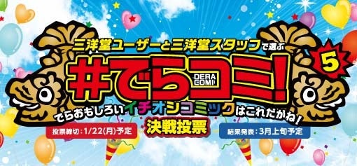 三洋堂ユーザーと三洋堂スタッフで選ぶコミックアワード「#でらコミ! 5」 決選投票が本日1/9よりスタート!