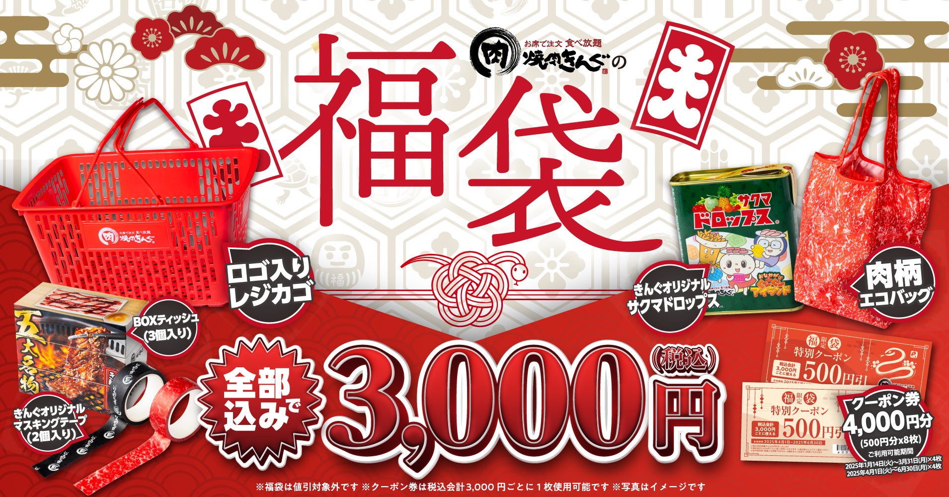 豊橋に本社を構え、全国で334店舗を展開する『焼肉きんぐ』は、クーポン券や非売品のオリジナルグッズが入った「焼肉きんぐの福袋2025」(税込3,000円)を2025年1月2日(木)より発売。事前Web予約の受付を2024年12月2日よりスタートしています。