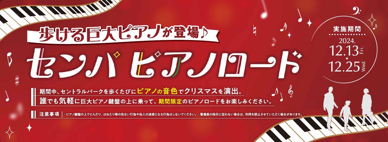 【歩ける巨大ピアノ⁉】クリスマスを音楽で彩る。センパ史上最大級約10mの『センパピアノロード』がセントラルパークに登場♪