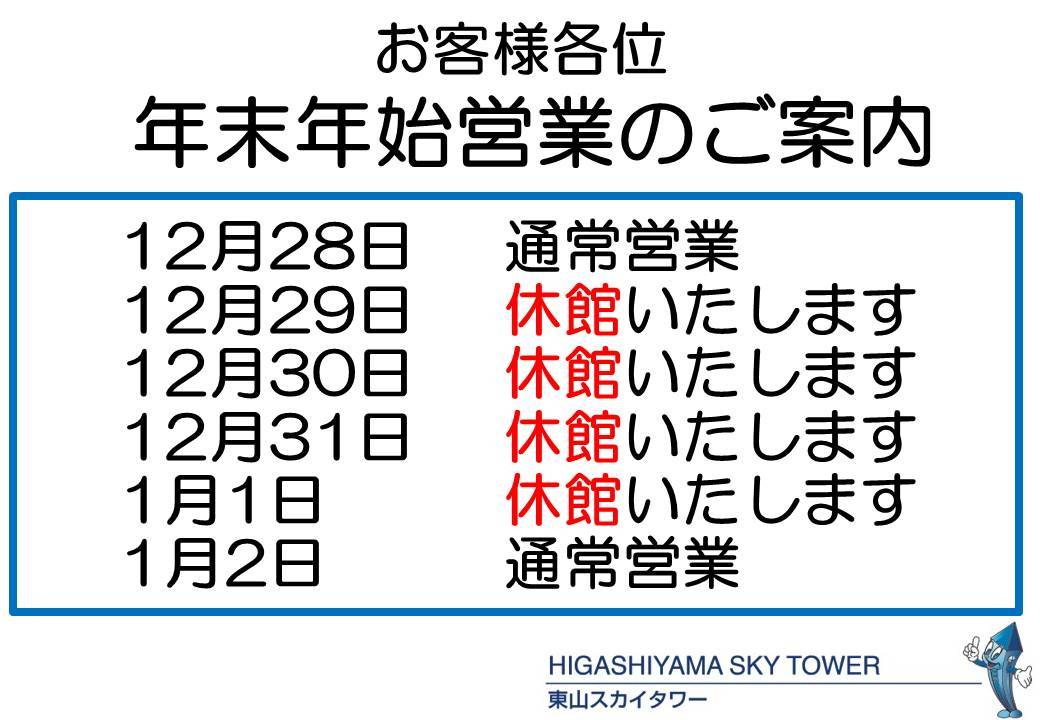 東山スカイタワーも1月2日から開館。展望室では先着50名に「新春タワー福引き」が楽しめます。