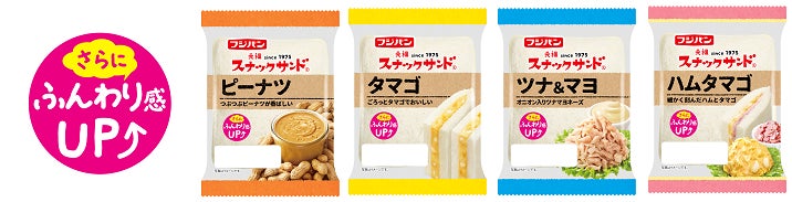今年で50周年を迎える「スナックサンド」。今回のリニューアルでは生地配合を見直し、パン生地の『ふんわり感』を感じられる仕立てとなり、バラエティ豊富な様々な具材に合うバランスの良さと「ふんわりとした食感」が実現しました。