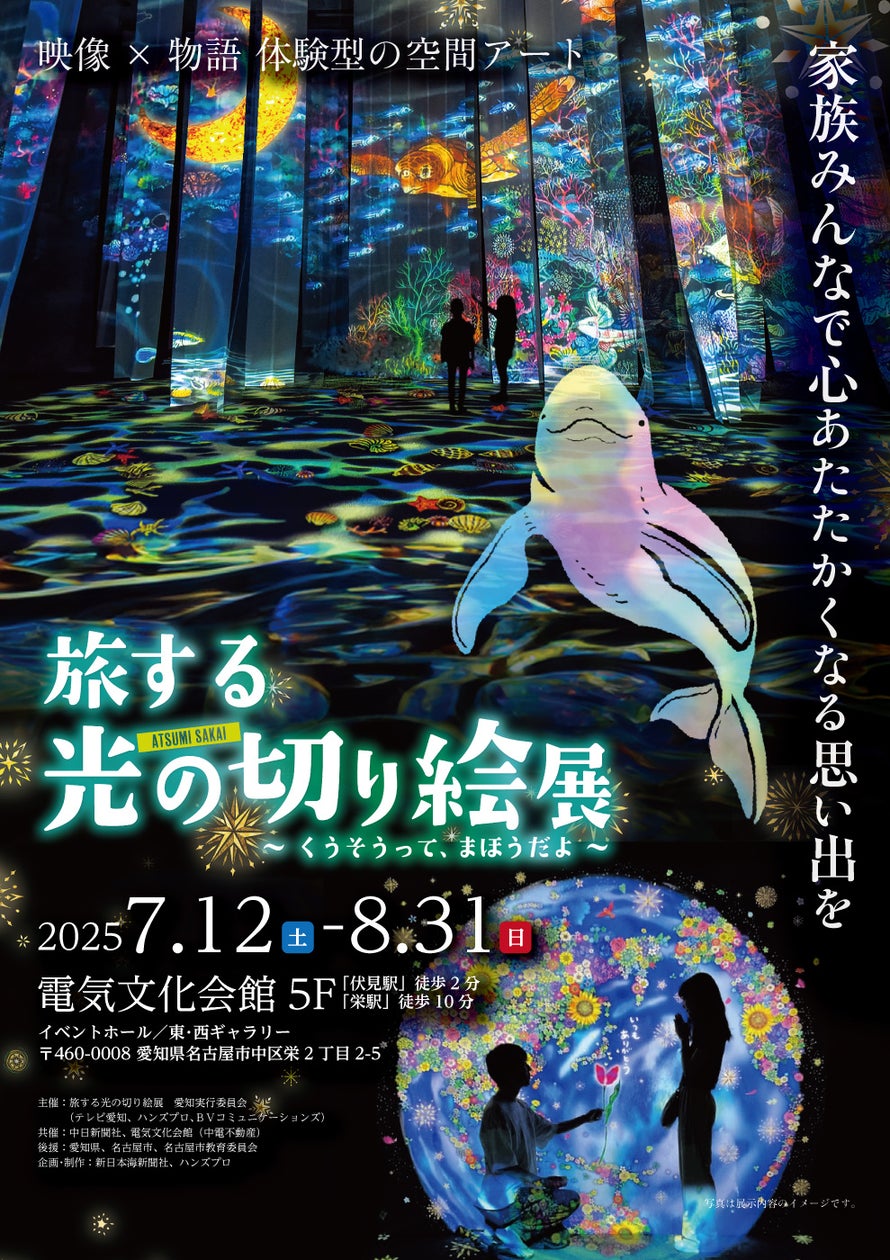 「旅する光の切り絵展 ~くうそうって、まほうだよ~」が7月12日(土)~8月31日(日)まで名古屋伏見の電気文化会館にて開催。光の切り絵作家・酒井敦美氏による切り絵のぬくもりと美しさに“光”と“映像”を融合させた幻想的な空間を味わう体験型アート展が名古屋で初めて幕を開きます。