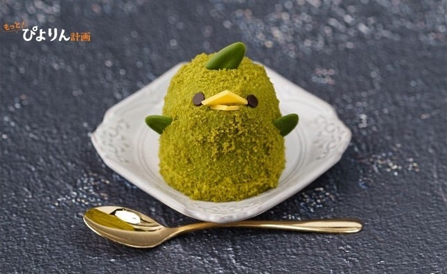 「抹茶ぴよりん」は、名古屋コーチン卵を使用した濃厚なプリンを抹茶風味に仕上げ、まろやかな抹茶ババロアで包んだぴよりん。羽やトサカにも抹茶が使われており、ぴよりんの全身から抹茶の豊かな香りと濃厚な味わいを楽しめます。