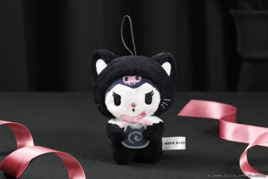 黒ねこ姿に変身した「クロミ」のぬいぐるみマスコットも登場!。「ねこねこ食パン」のコラボフレーバーを両手で抱えたかわいいデザインです。手のひらサイズなのでバッグやポーチに付けるのもおすすめ!パッケージに使われている専用の缶にも注目です。数量限定なので、お見逃し無く!