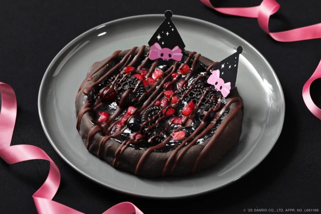 ふんわり柔らかな食感のまっくろな生地に、なめらかなカスタードとチョコをトッピングした「クロミのまっくろスイーツピザ~チョコベリー~」も登場。甘酸っぱいベリーとザクザク食感のココアビスケットを合わせて、最後まで飽きの来ない味わいに仕上がっています。